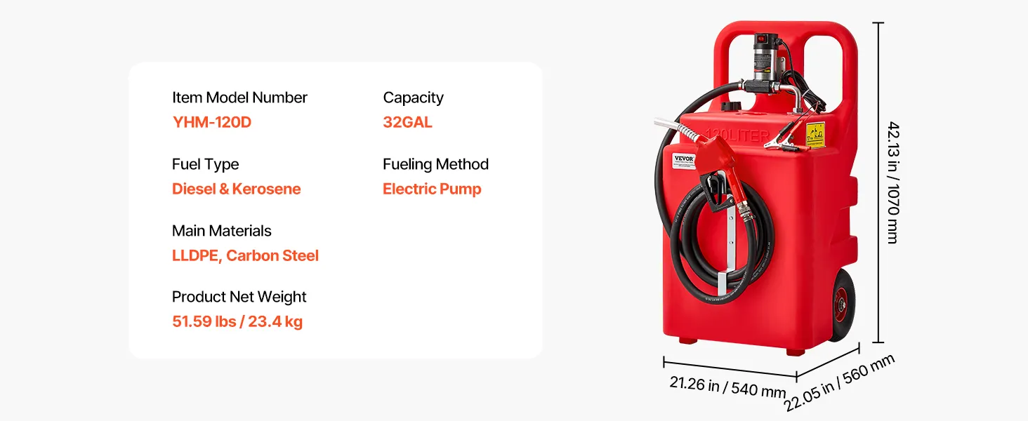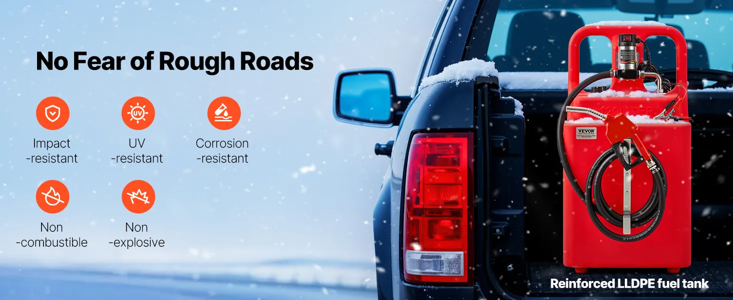 Durable Material: Made from high-quality LLDPE, this diesel caddy tank is corrosion-resistant, scratch-proof, and built to withstand harsh weather. Whether rain or shine, this caddy holds up and keeps your fuel secure for the long haul.
