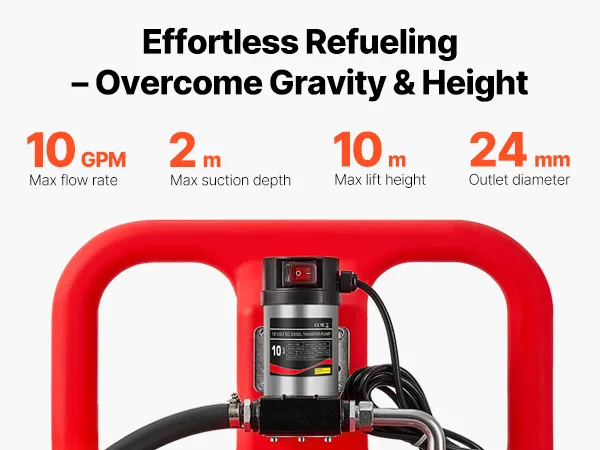 Get the job done faster with the high-power electric pump! Delivering fuel at an impressive 10 GPM flow rate, our gas caddy ensures smooth, quick refueling every time.