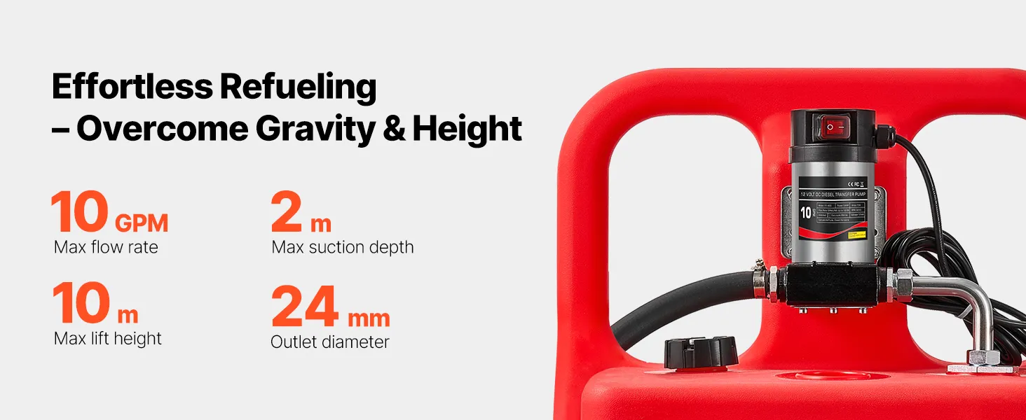 Electric Pump Assistance: Fueling made easy! With 12V power support, our gas caddy lets you refuel quickly and efficiently, no matter where you are—whether you're in your car or off on an outdoor adventure. Fast, flexible, and hassle-free!