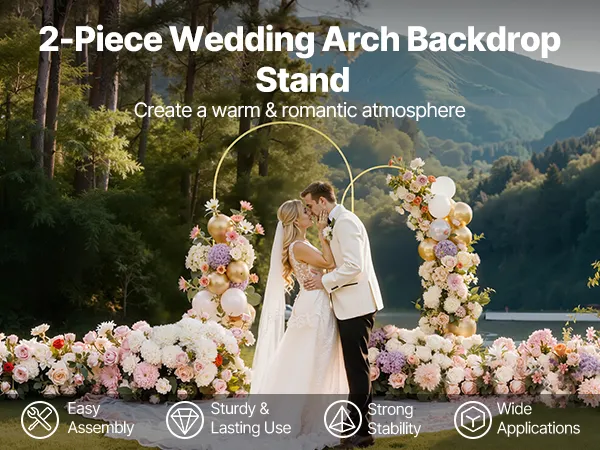 This 2-set arch backdrop stand is easy to assemble. Featuring a metal frame, it ensures stability and long-lasting use. Ideal for both indoor and outdoor occasions, it helps create a warm and romantic atmosphere effortlessly.