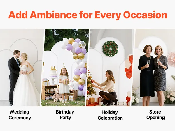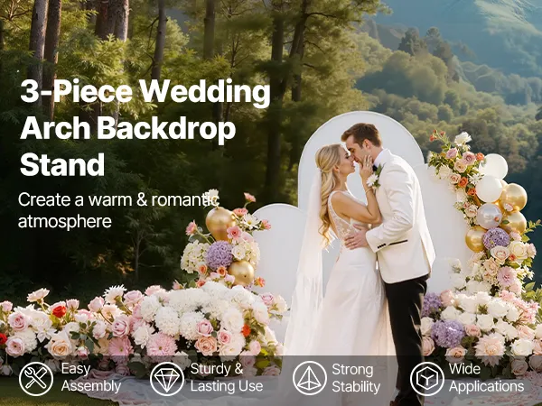 This 3-set arch backdrop stand is easy to assemble. Featuring a metal frame, it ensures stability and long-lasting use. Ideal for both indoor and outdoor occasions, it helps create a warm and romantic atmosphere effortlessly.