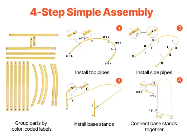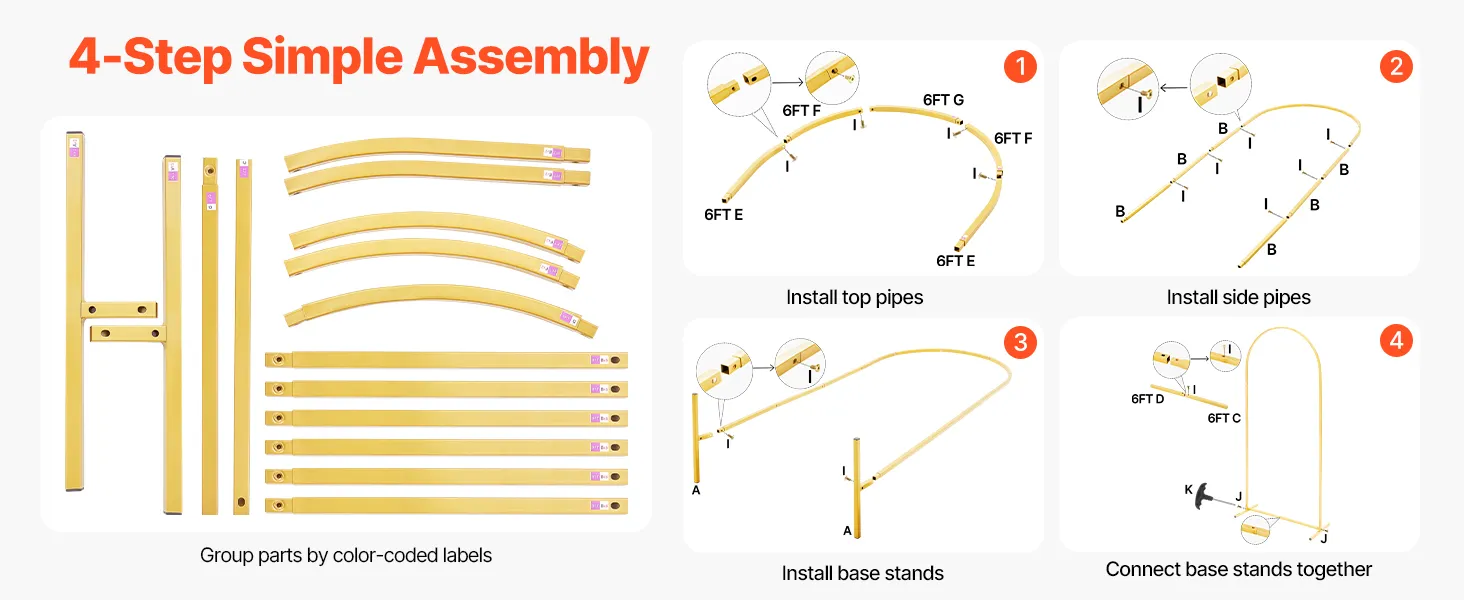 Easy Assembly: Our gold arch backdrop includes an instruction manual to show each step of the installation clearly. Each part is numbered and color-coded to correspond with the manual, making grouping and assembly simple without stress