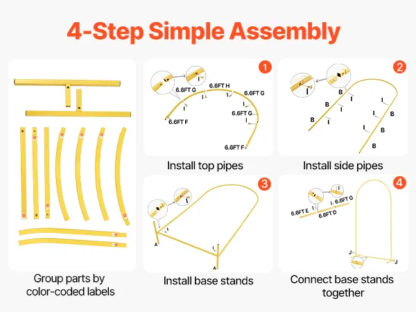 Easy Assembly: Our gold arch backdrop includes an instruction manual to show each step of the installation clearly. Each part is numbered and color-coded to correspond with the manual, making grouping and assembly simple without stress