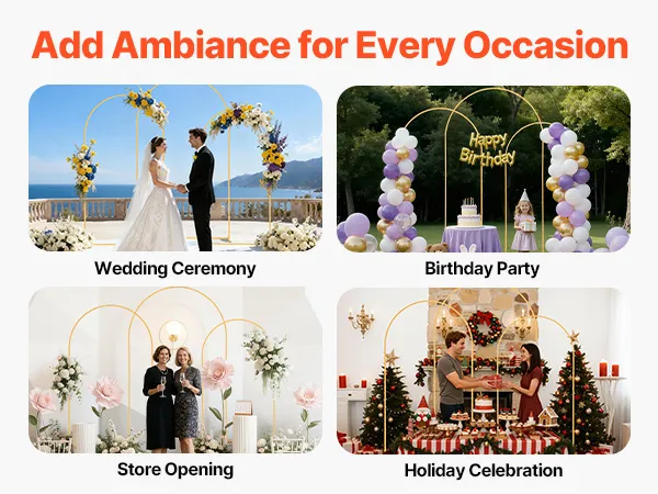 Versatile Use: Ideal for weddings, parties, holiday celebrations, or store opening decorations, the metal arch stand allows flexible decoration with balloons, flowers, tulle fabric, LED lights, and more. (NOTE: Decorations are not included)