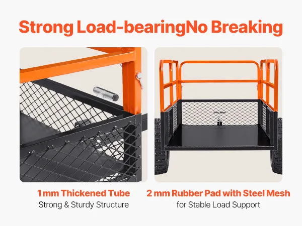 Efficient Hauling Helper: Unlike most yard trailers, this atv trailer carries up to 1,800 lbs. The 50*50mm thickened hitch and 25×25mm side rails enhance capacity, prevent deformation, and reduce pipe breakage, ensuring long-lasting durability.