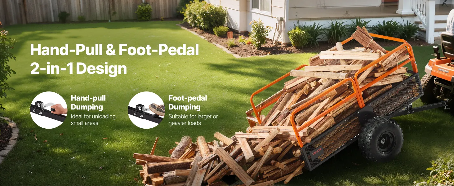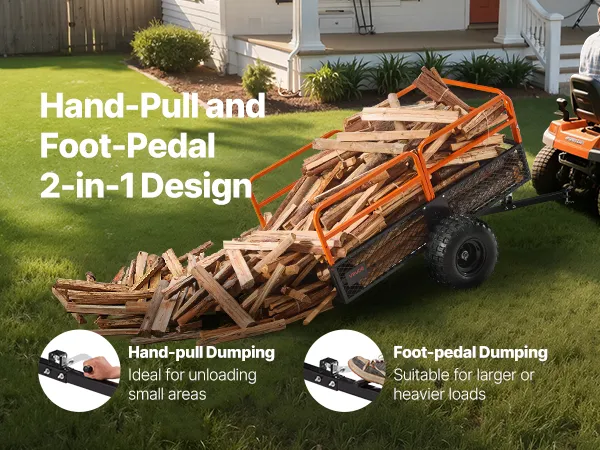 Hand or Foot Control: Equipped with both hand-pull and foot-pedal dumping options, users can choose based on the task. Hand-pull is great for precise tasks, while foot-pedal is ideal for quick bulk unloading, reducing strain and boosting efficiency.