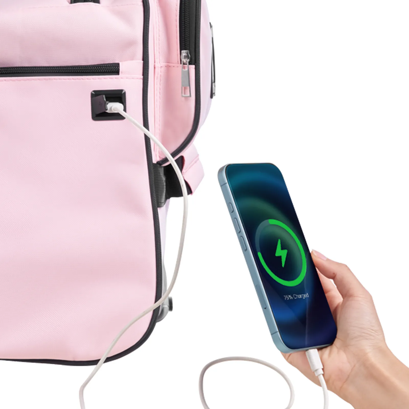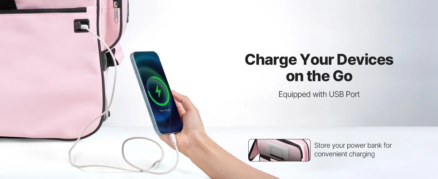 Store your power bank inside our dance bag with rack and quickly charge via the USB port anytime, anywhere.