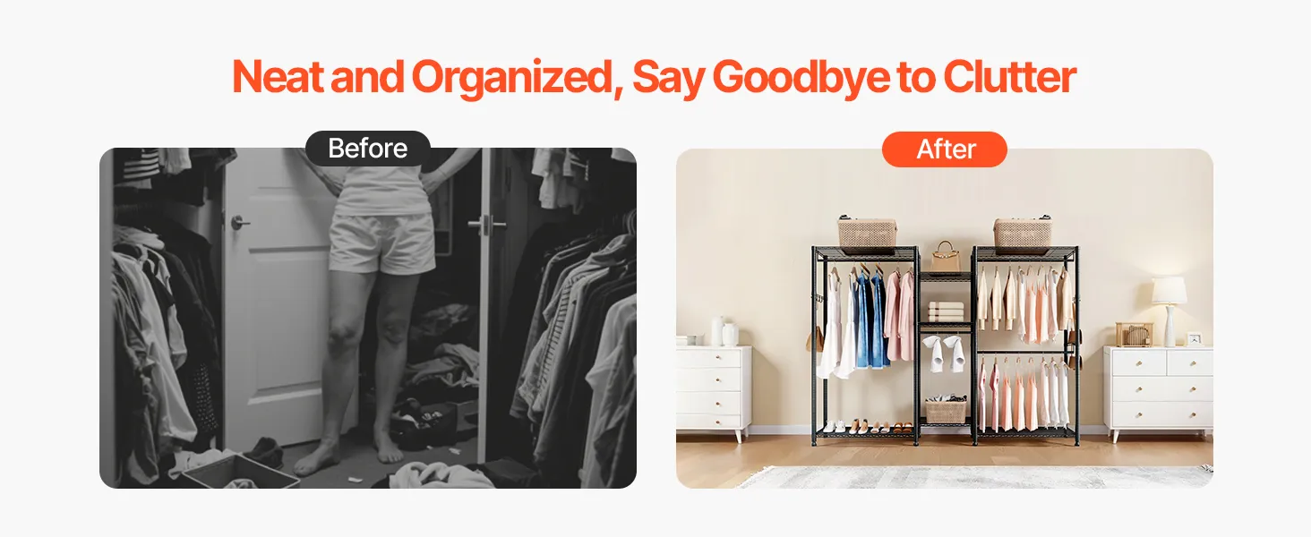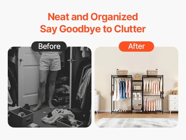 Adjustable Shelves: The height-adjustable shelves allow you to customize the storage space to fit different clothing and items. Whether it’s long coats, short jackets, folded sweaters, or accessories, you can reposition shelves to suit your storage needs
