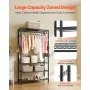 This clothing garment rack provides ample storage and is made of heavy-duty carbon steel for durability. Shelves are height-adjustable to fit clothing of different sizes, offering flexible storage. Quick and tool-free assembly makes organizing your space easy and efficient.