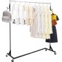 This rolling garment rack is made of heavy-duty steel, strong enough to hold your heavy clothes, while 1.2 mm thickened pipe gives extra sturdiness. The portable clothes rack can be easily moved with four swivel casters, and two lockable casters provide added stability. Moreover, the rolling clothes rack is high enough for your long-style suits. It can also be easy to set up and store. A perfect clothing storage solution for your house.