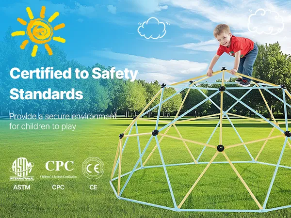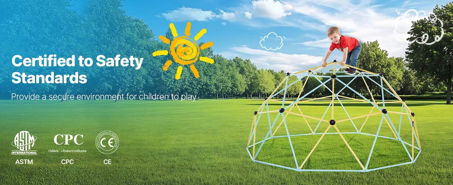 Prioritize Safety: We put kids' safety first. This geometric dome climber is ASTM and CPC certified, giving parents peace of mind while letting kids explore safely and freely. Non-slip, easy-grip handles ensure safer climbing and smooth, burr-free tubes prevent scratches