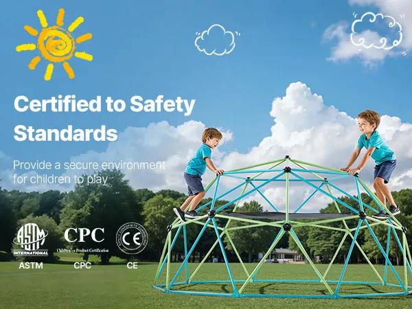 Prioritize Safety: We put kids' safety first. This geometric dome climber is ASTM and CPC certified, giving parents peace of mind while letting kids explore safely and freely. Non-slip, easy-grip handles ensure safer climbing and smooth, burr-free tubes prevent scratches