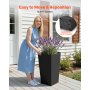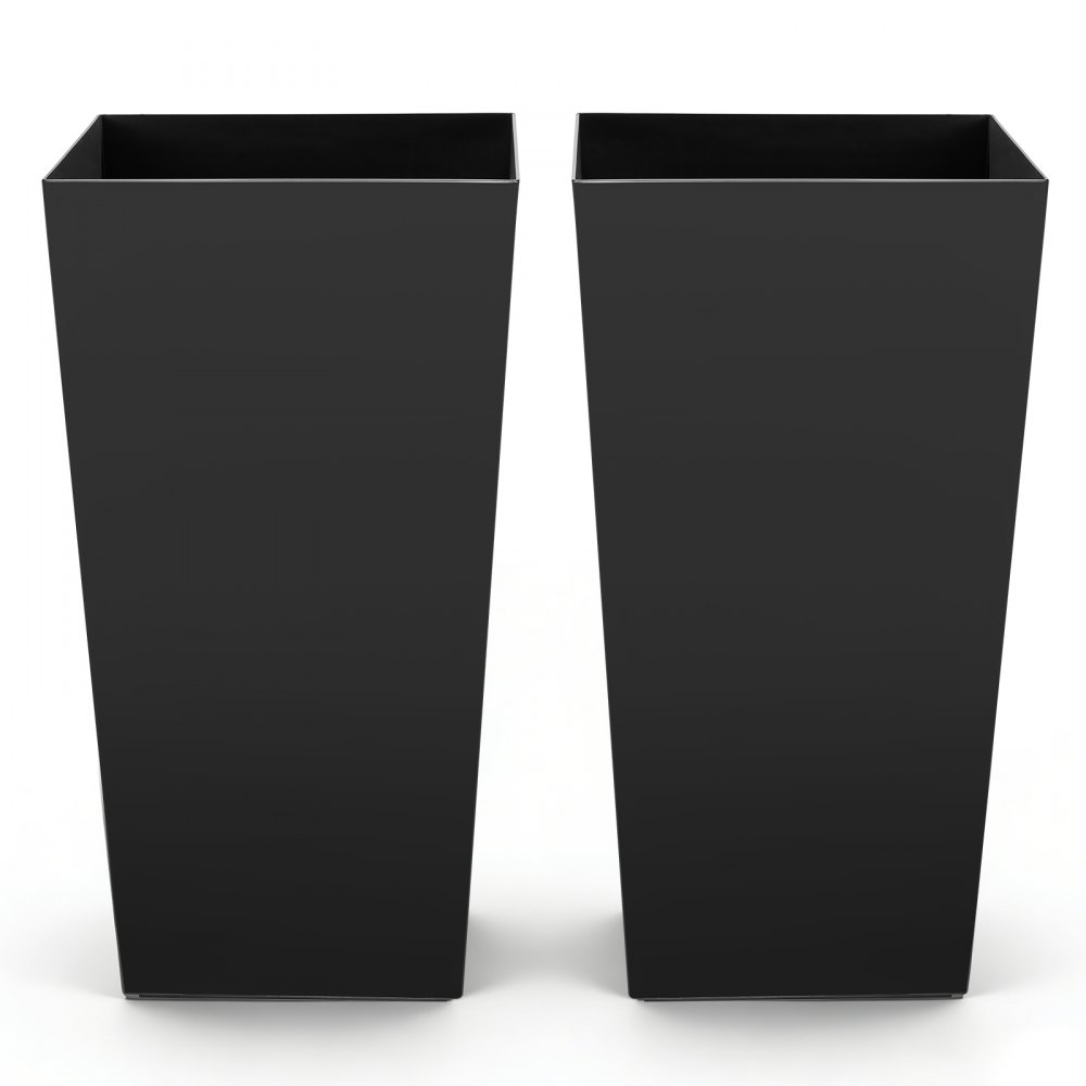 VEVOR Tall Planters Set of 2, 750 mm Large Outdoor Taper Planters for Outdoor Indoor Plants, Front Porch Plastic Modern Flower Pots with Casters, Inner Pot & Drainage Holes for Patio, Garden, Black