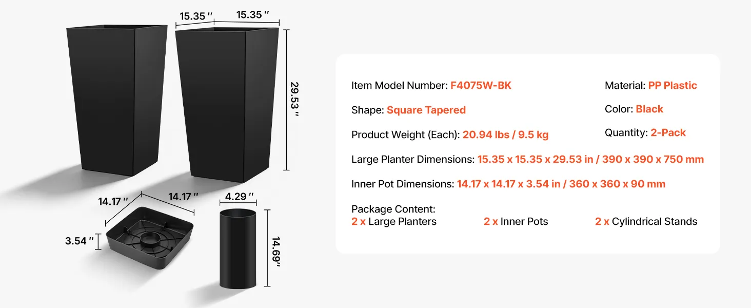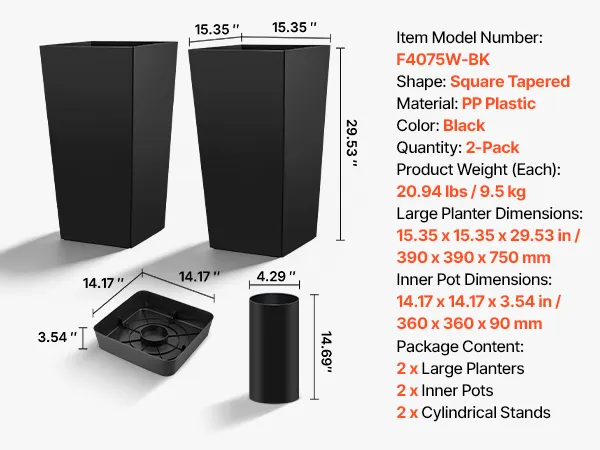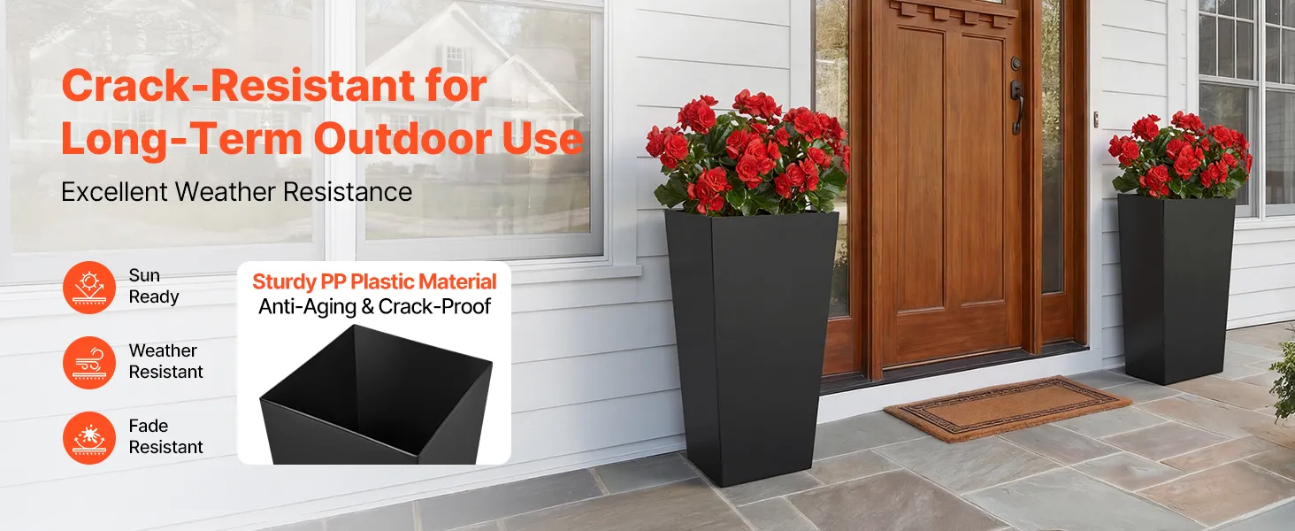 Crafted from tough PP plastic, these tall outdoor planters resist wear, fading, and cracking. Built to handle rain, sun, and daily use, they stay stable and upright for long-lasting outdoor performance.