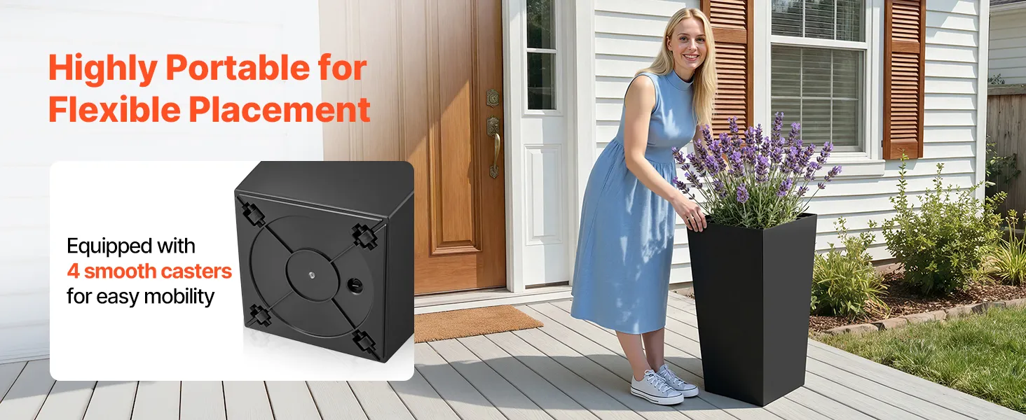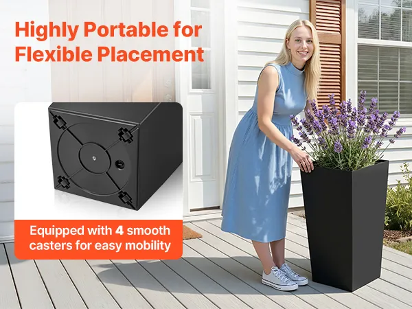 Easy to Move: Engineered for stability, our front porch tall planters remain secure even in harsh weather. Built-in bottom casters allow you to reposition them effortlessly, making placement simple even in tight spaces