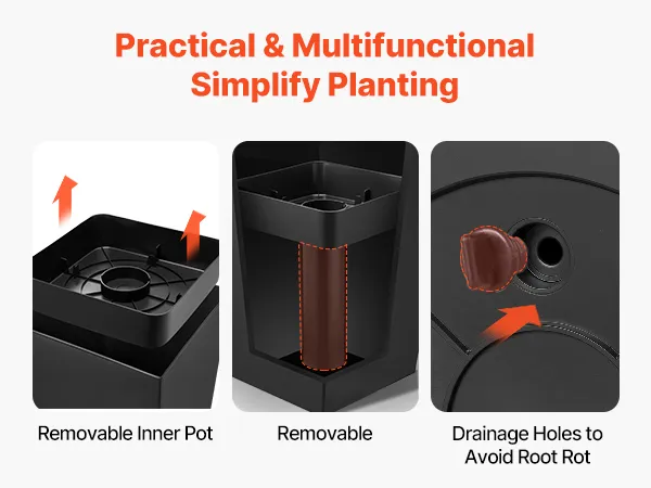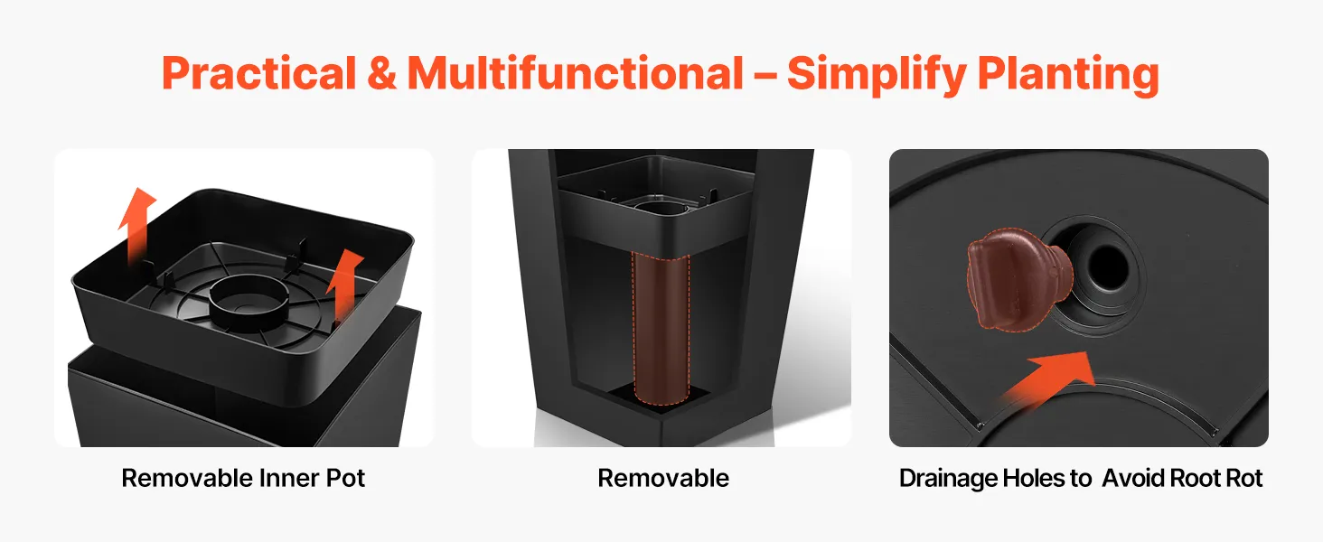 Easy Planting: Our tall outdoor porch planters feature convenient inner pots for flexible soil or potted planting. The movable cylindrical stand provides stable support for the insert, making planting simpler and cleaner