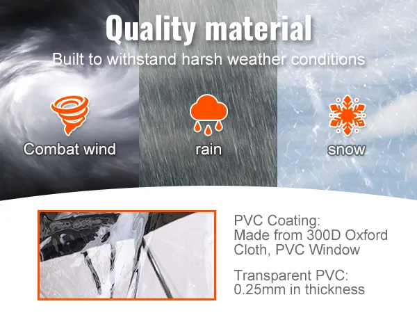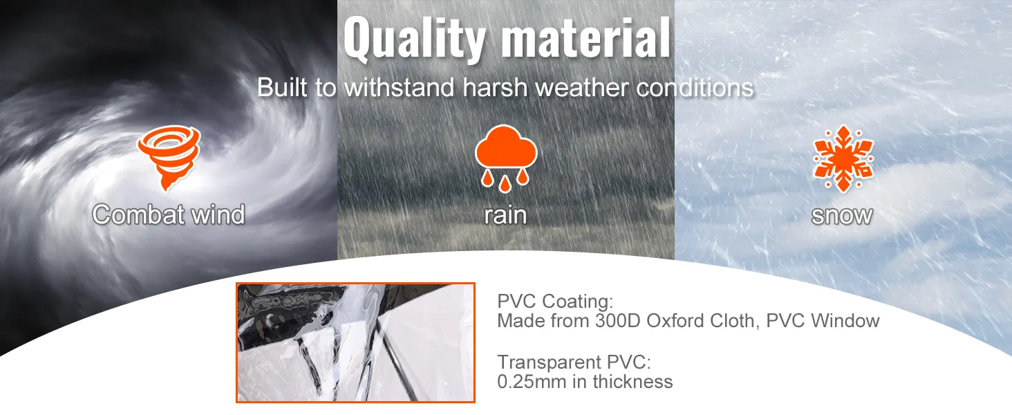 It has transparent PVC windows. They provide excellent visibility. These windows allow you to enjoy the surroundings without any obstacles. The clear view enhances safety and adds to the overall riding experience. All of these are made from high-quality PVC. This ensures they stay clear and durable, a feature that is essential for navigational purposes. The transparent material helps you see clearly, even when the enclosure is zipped up. Transparent windows make this enclosure a practical choice.