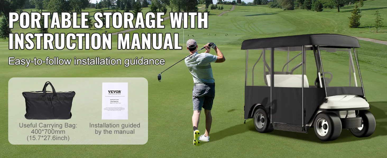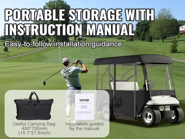 This VEVOR 4-sided fairway deluxe golf cart cover is easy to set up and store. The size of the bag is 40 x 70 cm. This makes it easy to store the lid when not in use. Users can easily carry the golf cart cover from one place to another using this bag. Its removable front folds easily into padded side pockets for convenient storage.