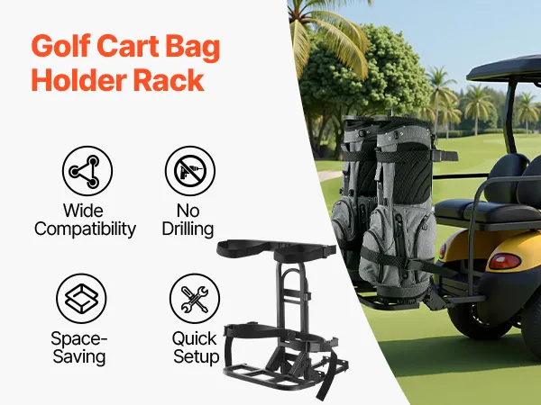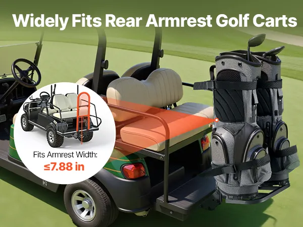 Wide Compatibility: This golf cart bag holder fits most golf carts with rear handrails (handrail width ≤7.88 inches), including EZGO, Club Car, and Yamaha models