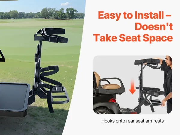 Zero Seat Space Occupancy: The golf cart bag holder bracket maximizes rear seat space for storage without invading legroom, ensuring comfortable seating