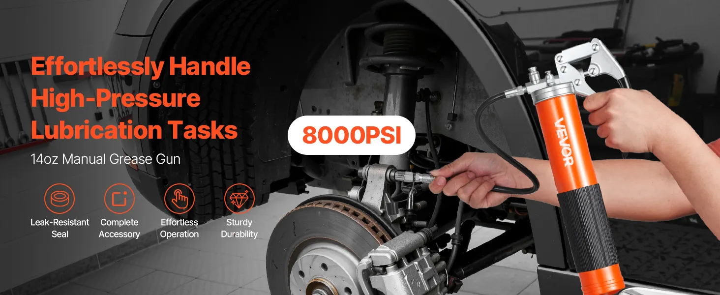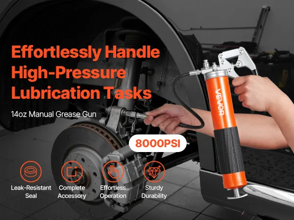 Powerful Performance: Delivering up to 8,000 PSI, our 14 oz grease gun easily pushes high-viscosity lubricants, overcoming resistance from stubborn grease fittings. It ensures full injection of lubricant and reduces buildup inside the tube