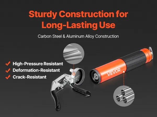 Crafted from a carbon steel body combined with an aluminum alloy pump head, this professional pistol grip grease gun can withstand deformation and grease leakage, even with frequent use.