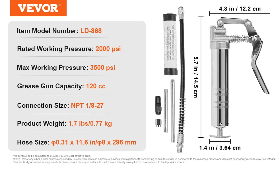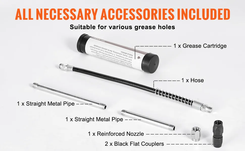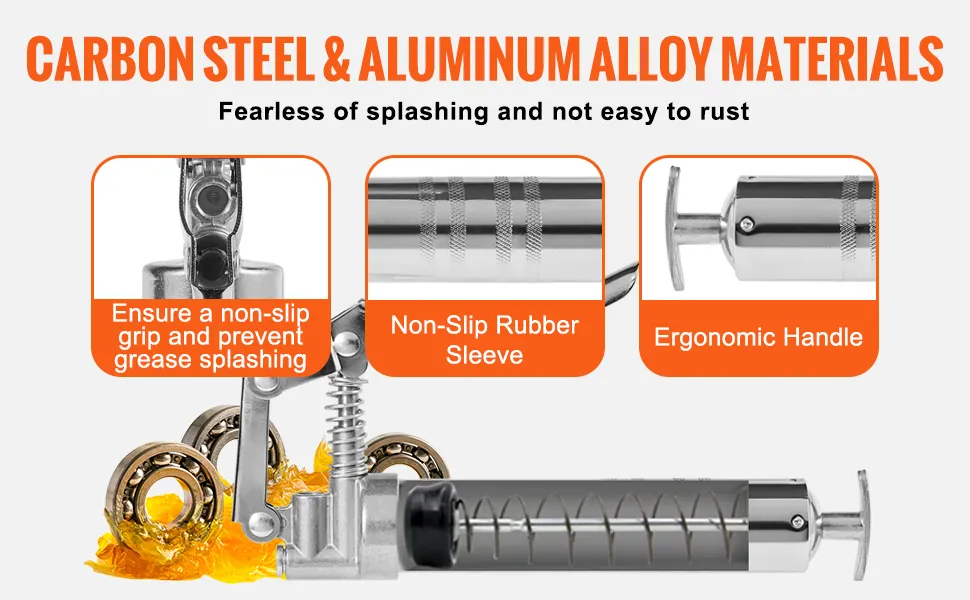 Built with durability in mind, the VEVOR grease gun is constructed from high-quality materials such as carbon steel and aluminum alloy. These materials ensure that the grease gun can handle demanding tasks without compromising its functionality. The solid construction makes the tool resistant to wear and tear, ensuring it can endure regular, heavy use. Additionally, the tough build supports high-pressure applications, meaning this grease gun can effectively handle even the most strenuous tasks. Its long-lasting design ensures that you can rely on it for extended periods, making it a worthwhile addition to any professional’s toolkit.