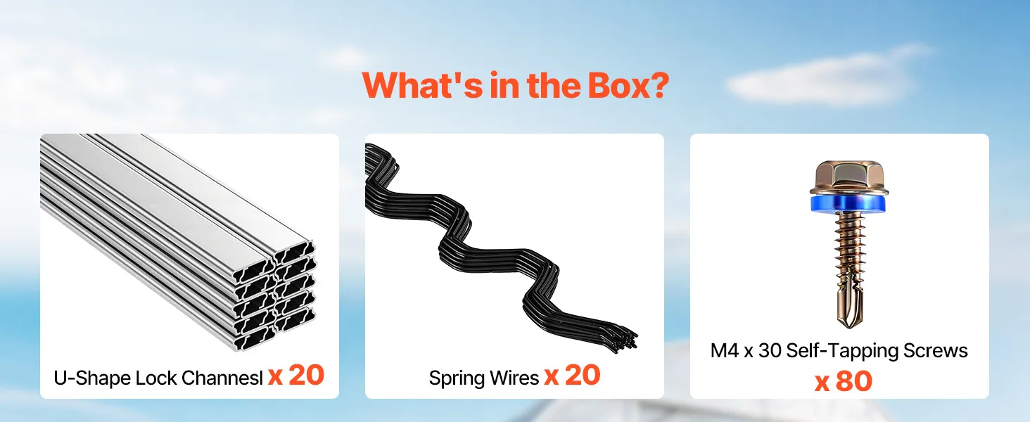 Secure & Reliable Fixation: Our greenhouse lock channel set includes 20 channels and 20 springs wires, precisely matched to work together. They ensure the greenhouse withstand climate changes, improve weather resistance, and avoid damage or collapse