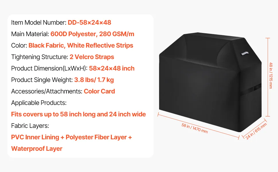 Wide Compatibility Sizes: The bbq gas grill cove dimension is 58x24x48 inch / 1470x615x1215 mm. The universal grill cover fits most grills. Simply measure your grill to find the perfect-fitting cover. NOTE: This product does not include a grill