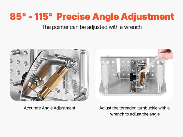 Easily adjust your sharpening angle from 85° to 115° with the adjustable pointer and threaded turnbuckle. Turn the knob clockwise to lock the dial securely, then use a wrench to fine-tune the threaded turnbuckle to adjust the angle.