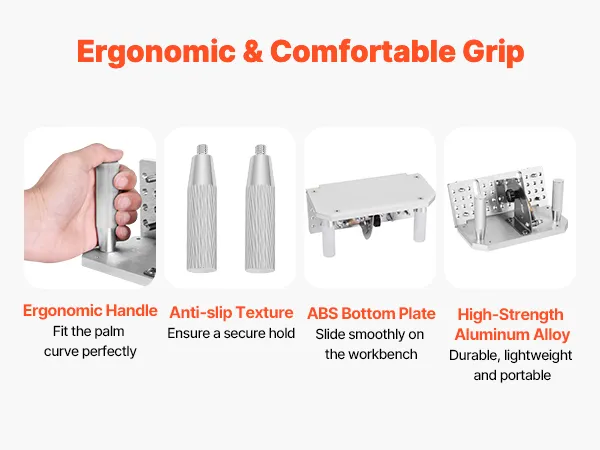 The dual ergonomic handles with anti-slip texture provide a firm and comfortable grip; ABS bottom plate ensures smooth sliding on your workbench, and the high-strength aluminum alloy frame offers lasting durability.