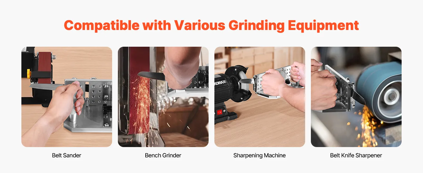 • Wide Compatibility: This knife sharpening jig is compatible with belt sanders, bench grinders, sharpening machines, and belt knife sharpeners. Built with high-strength aluminum alloy, it is wear and corrosion-resistant, while remaining lightweight and easy to handle