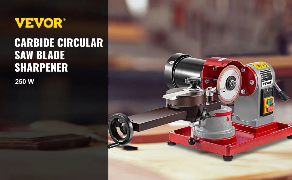【HIGH-EFFICIENT RUNNING】- Power: 250 W. Running Speed: 2850 RPM. Working Diameter: 3''-29.5''/80-750 mm. Grinding Wheel Size: 5". The pure copper motor enables the carbide circular saw blade sharpener to maintain high performance.