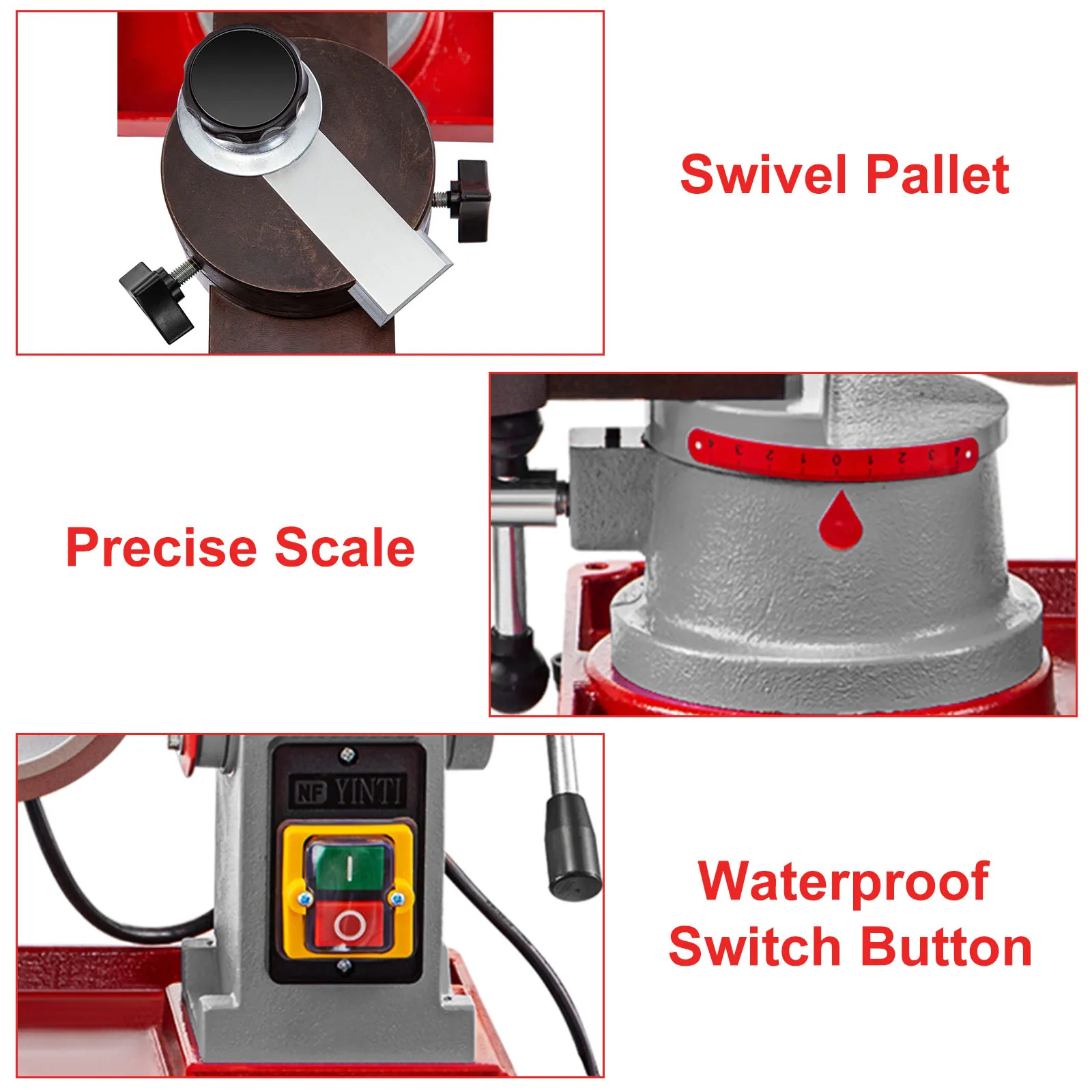 【THOUGHTFUL DESIGNS】- Our carbide saw blade sharpening machine features a waterproof switch button, two scales, and a surround-shaped pallet. The surround-shaped pallet is designed to hold the saw blade or other abrasive pieces.