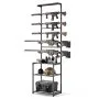 Featuring a compact structure, this freestanding wall mount gun rack stand includes a top display surface and three lower shelves that provide ample storage space for tactical tools and shooting gear.