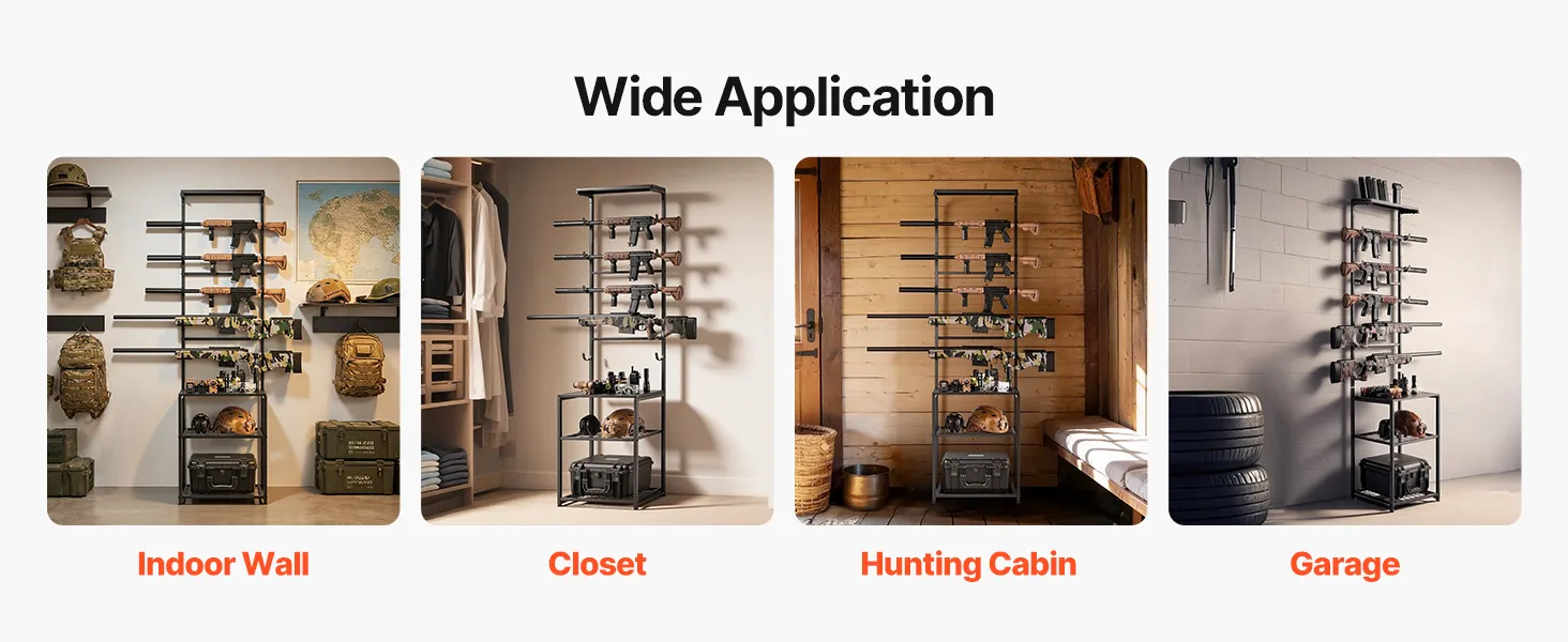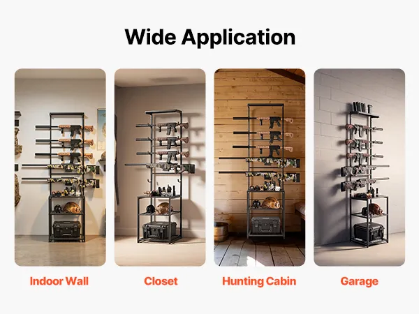 Multi-Scenario Compatibility: Designed for gun rooms, garages, and hunting cabins, this freestanding gun shotgun rack stands independently without wall mounting, providing organized firearm storage