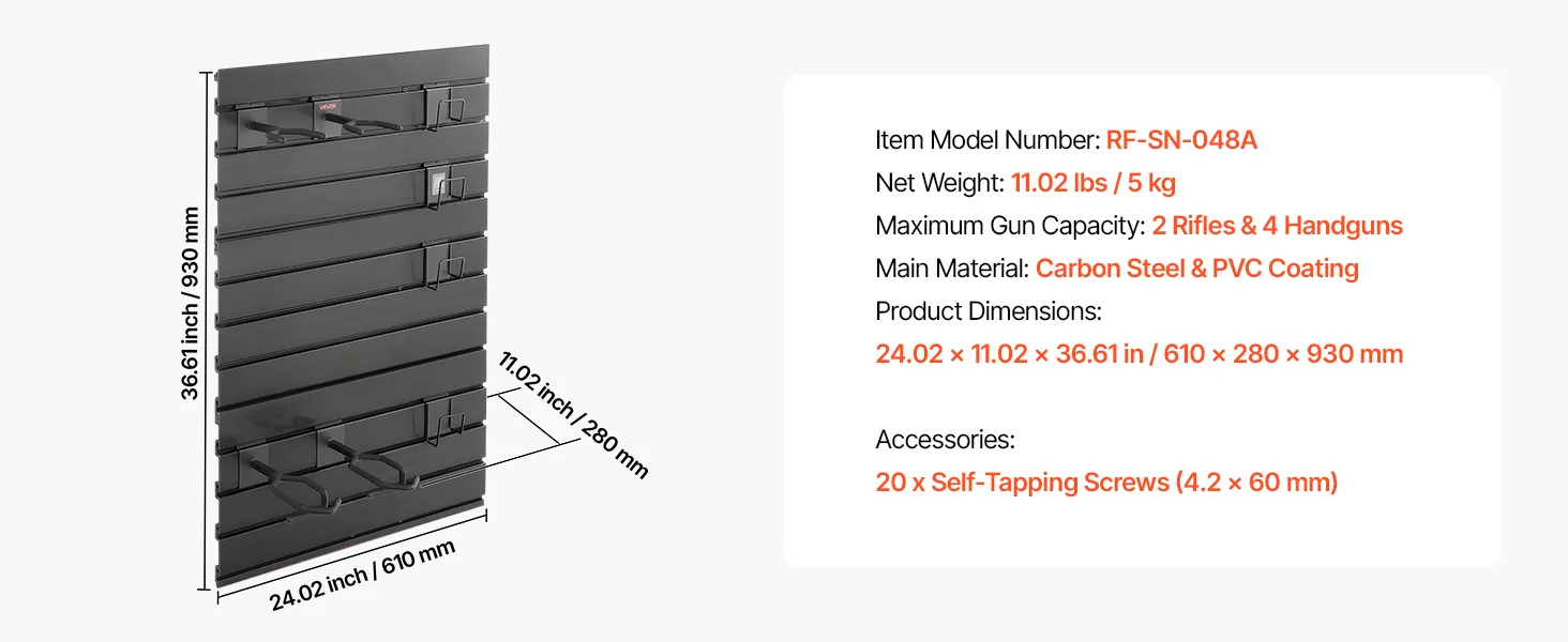 Sturdy Construction: Built with a carbon steel frame and a PVC back panel, this wall mount shotgun rack provides stable support, minimizes scratches, and delivers long-term durability