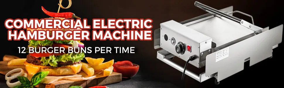 The double baking plates allow 12 hamburgers to bake simultaneously, greatly improving baking-efficiency.