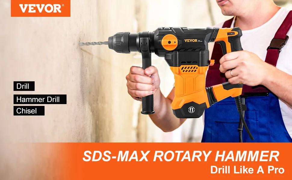 Whether you are a professional worker or a DIY user, this heavy-duty hammer is your wise choice. The rotary hammer delivers 5.5J of impact energy for fast drilling in concrete. It can quickly chisel through concrete and masonry walls, take out plaster and tile, chisel through breaks and perforations in pipes in walls and floors, and does concrete repair work effortlessly. Four different functions of the drill, hammer, hammer drill, and chisel adjustment function adapt to various work scenarios. With features this good, you will be sure to blow through your next project with ease.