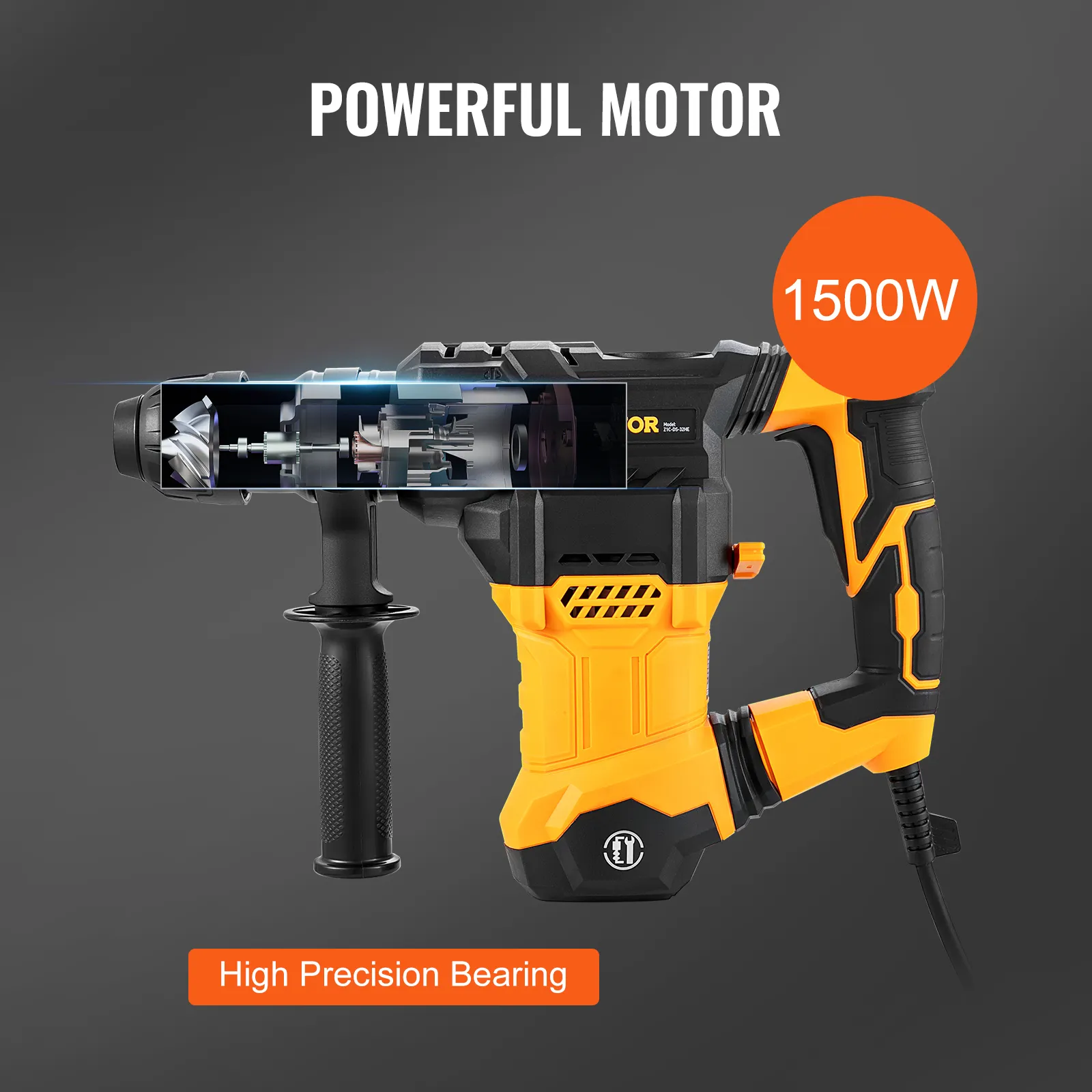 This power hammer is equipped with a 1500W motor and high-precision bearing. It delivers powerful impact energy to complete heavy-duty concrete, Masonry, and metal projects.
