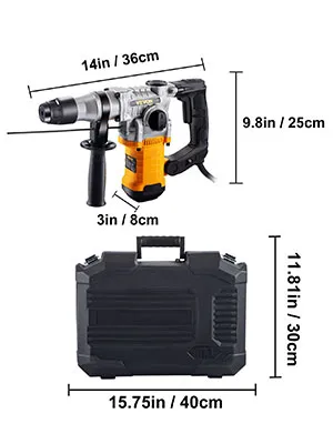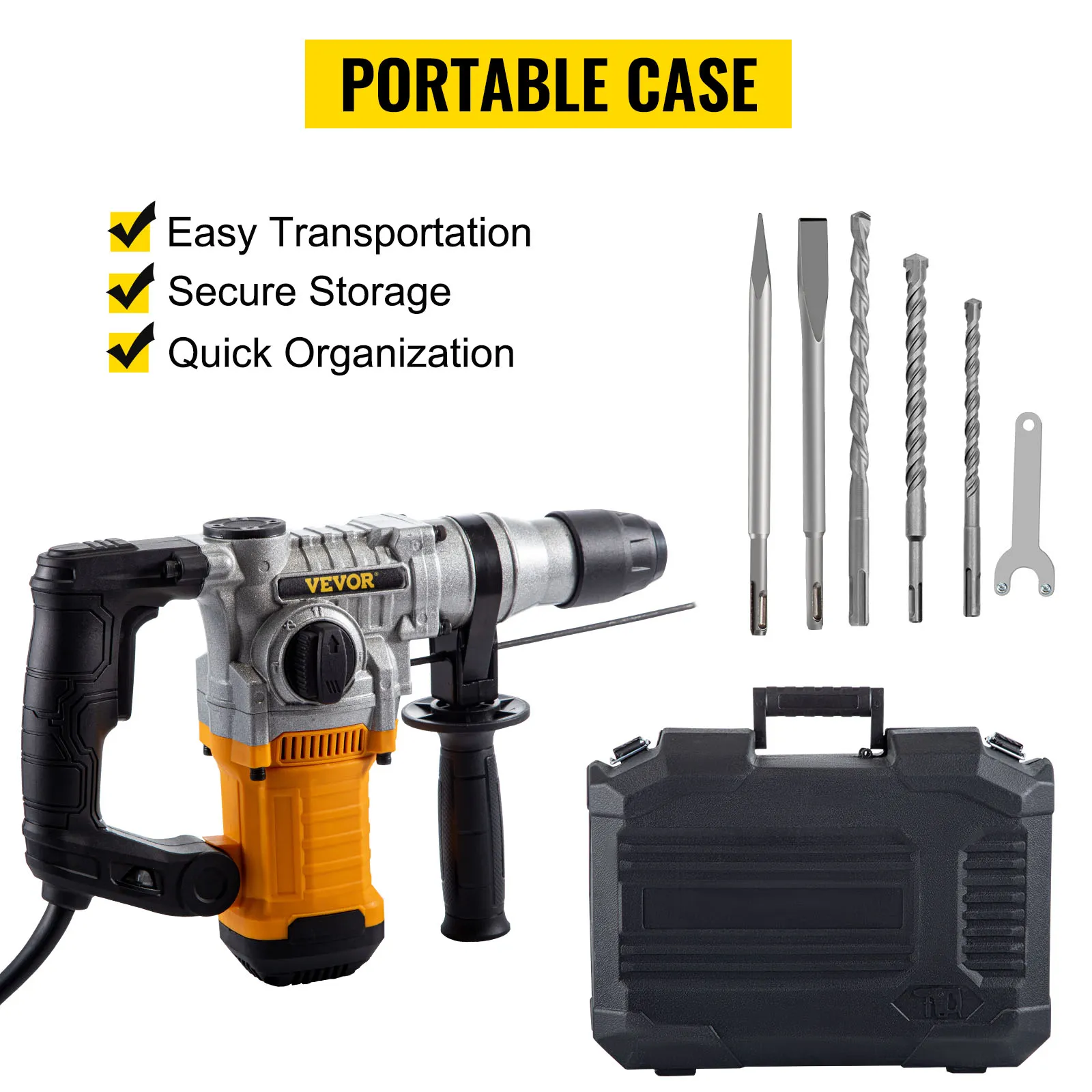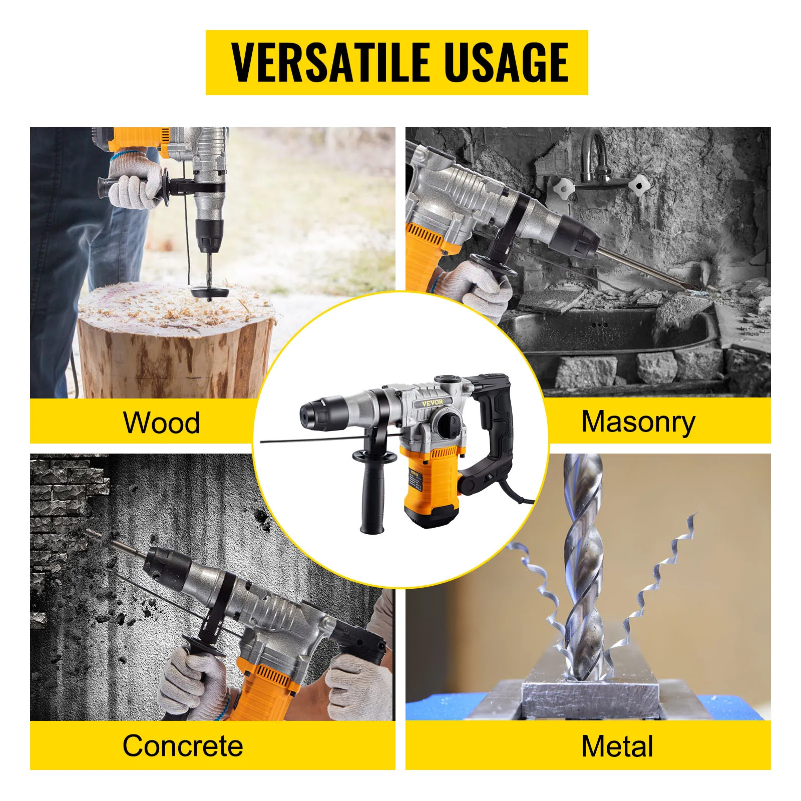 The rotary hammer drill combination kit is suitable for professional or daily household use. SDS drill can effortlessly remove bricks or brick structures. It is perfect for drilling wood, steel, and concrete.