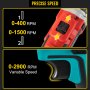 The brushless drill highlights two-speed transmission (0-400 / 0-1500 RPM) for efficient screwing and drilling tasks. The variable speed trigger of this cordless impact driver allows for precise speed control up to 2900 RPM by your fingers.