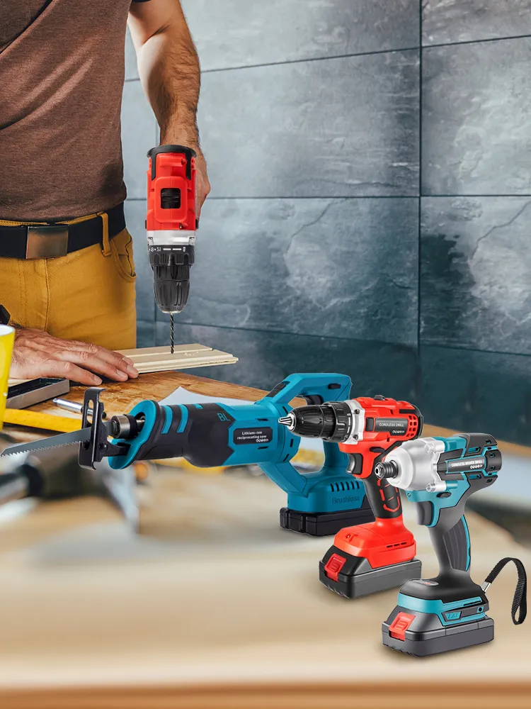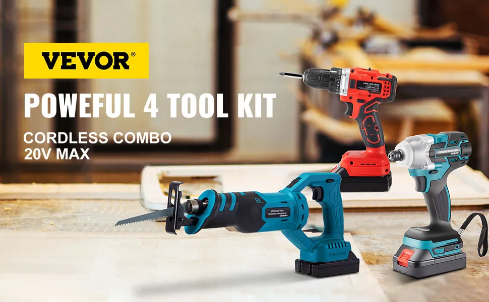 VEVOR's 20V cordless combo set is the right choice for your refined drilling and cutting tasks. The brushless drill features a 21 adjustable position clutch, and the impact driver delivers 1239 in-lbs / 140 Nm of torque, which satisfies all your daily needs. The high torque and the convenience of variable speed settings allow both tools to tackle applications in materials from wood to drywall. The reciprocating saw is suitable for cutting materials from plastic to metal. It's a fantastic tool kit for DIYers, electricians, or plumbers.