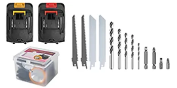 With two 20V/2.0Ah lithium-ion batteries & a fast charger, this combo kit can support a long-time use. Along with complete accessories, our product will make your work very convenient without restriction.