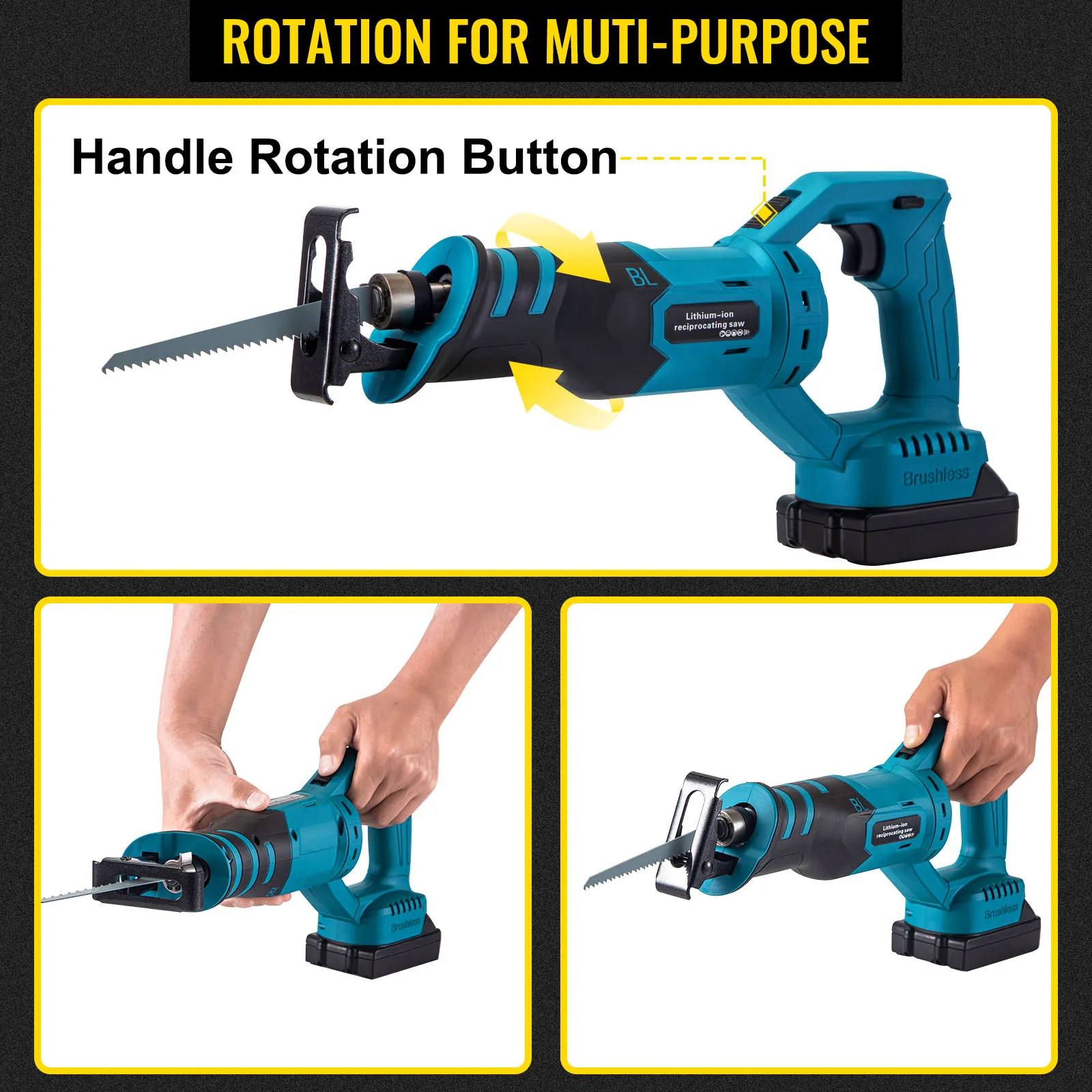 Just press the rotation button, and the reciprocating saw can be rotated 180° left and right to control the cutting angles and meet various needs flexibly.