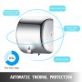 This hand dryer can deliver a protection to extremely-high temperature, extra-long time, super-high current and short circuit and features auto-stop function if hands are not removed after 63 seconds.