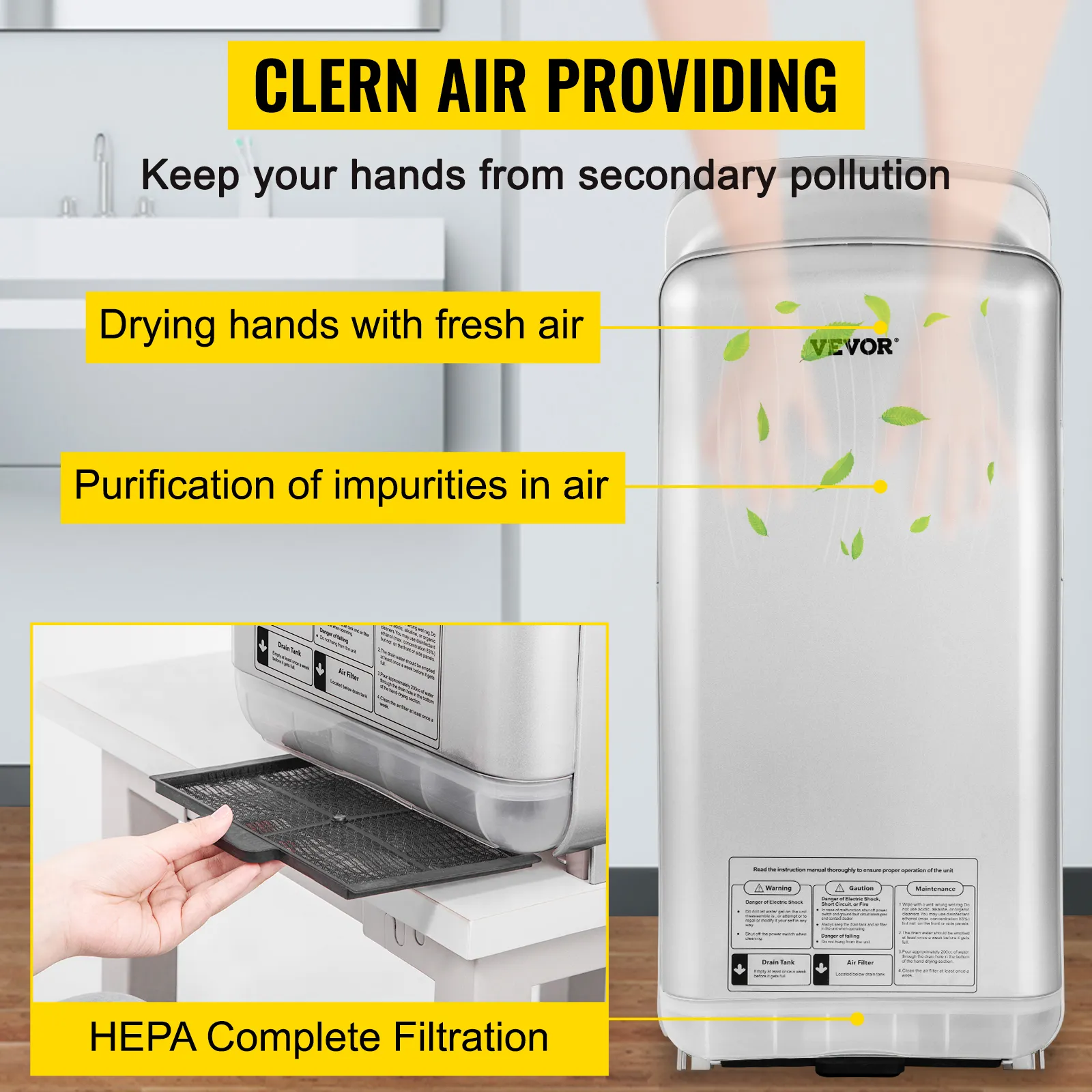 For your convenient use for four seasons, this intelligent air blade hand dryer provides hot air up to 43℃. You can effortlessly pour out the water to keep the machine in a good working status.