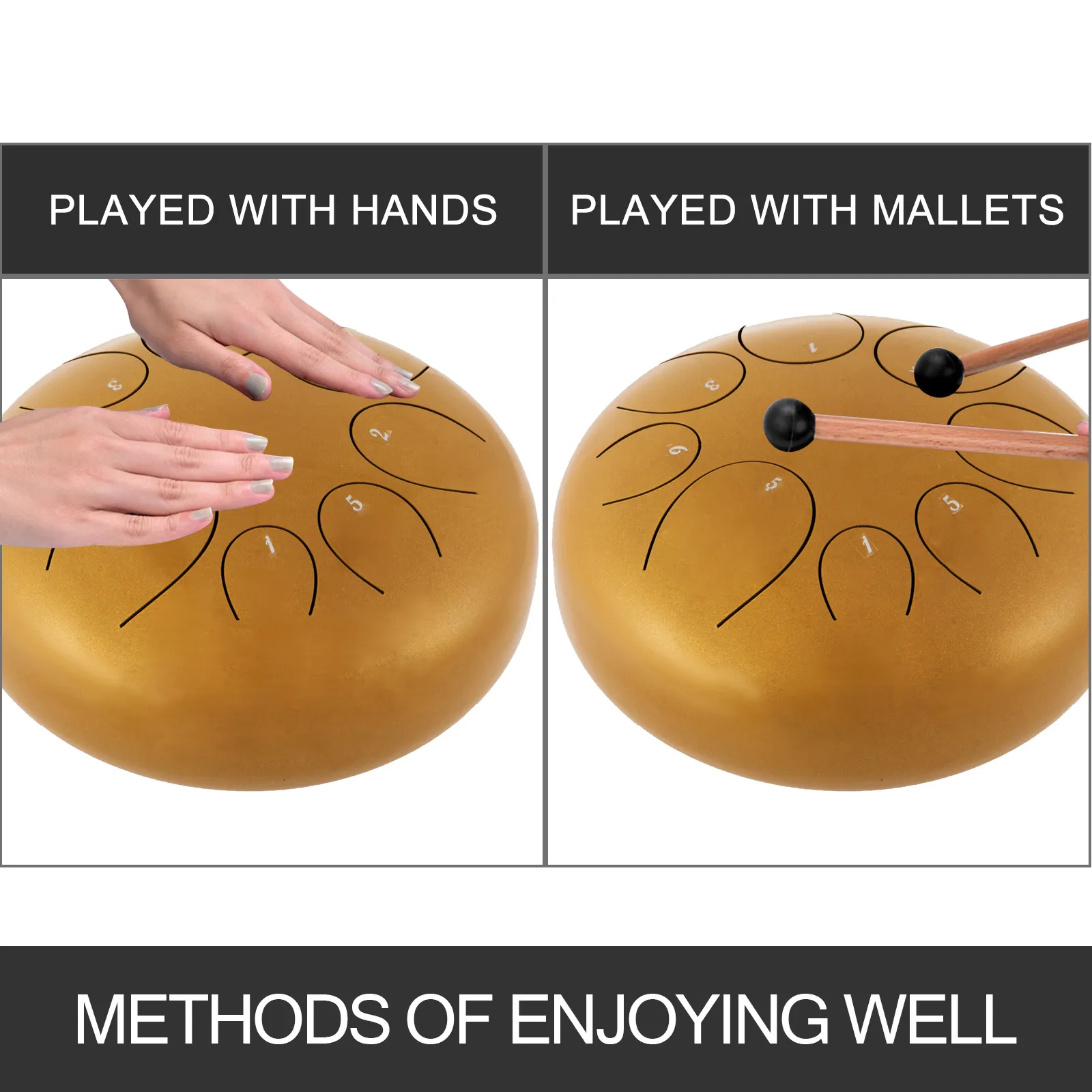 Our C Major Steel tongue drum is handmade by professional craftsmen. A total of 8 tones consisting of pentatonic scales, with a large number of musical scores, even beginners can play extremely pleasant music in accordance with the score.
