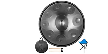 Hand pan is a musical instrument in the idiophone class. Made of nitrogen steel material, constructed from two half-shells of deep drawn with hollow inside, pan drum is designed for beautiful outlook and durability. Hand pan in D Minor 9 notes, including 1 center note and 8 tone fields for beautiful vibration sound. A great choice for street performances, festival celebration, friends & families gathering, etc.