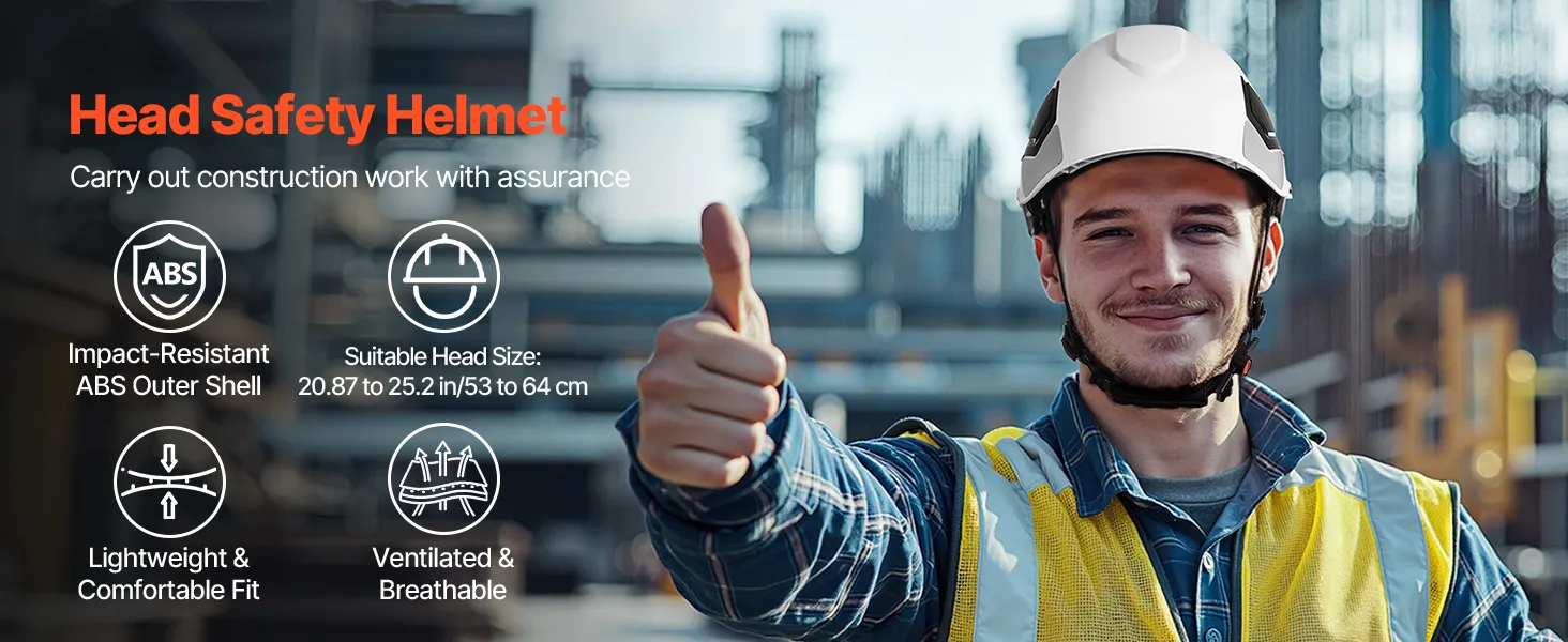 VEVOR Industrial Safety Helmet, ANSI/ISEA Z89.1 Approved ABS Safety Hard Hat with 6-Point Ratchet Suspension, Adjustable Vented Hardhat for Men Women Adults, for Outdoor Indoor Construction Workwear